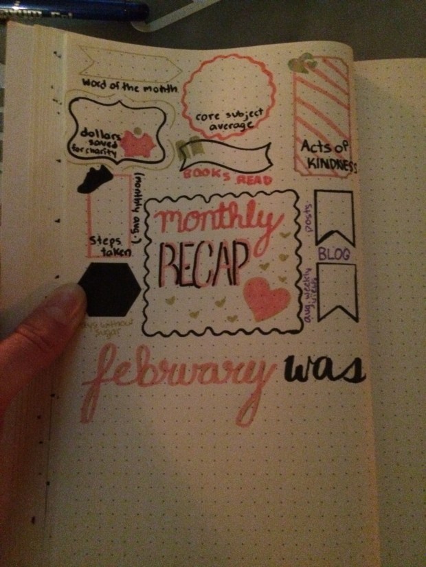 I said I would show you guys my February “Monthly Recap” section as soon as it was done, and I just finished it! Take a peek;)