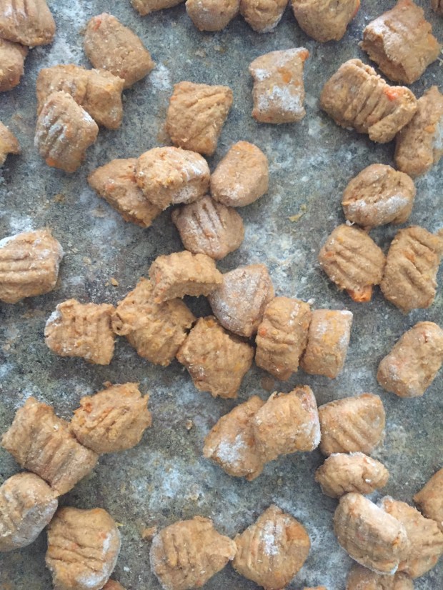 Hey there! I have a really neat recipe for you guys today. This Sweet Potato Gnocchi is super simple, yet super delicious! There are only two ingredients: Sweet Potatoes and Whole Wheat Flour, so these gnocchis are healthy as well. They’re great with tomato sauce, pesto, or even just some basil and olive oil. I hope you enjoy!