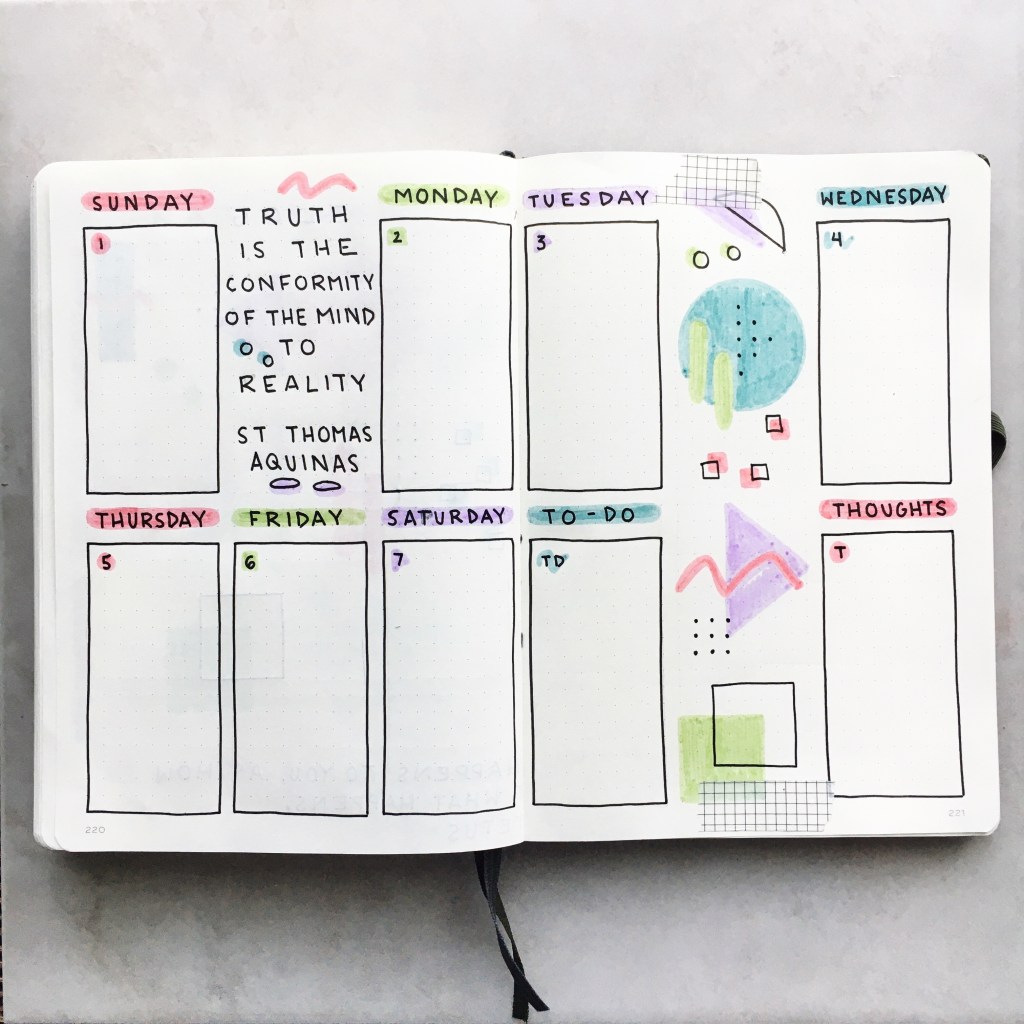 And lastly, my first weekly spread of November. Just did some simple boxes, a few doodles, and yet another quote. I also included a thoughts section, because you never know maybe I’ll have some philosophical thoughts that I’ll need to write down.