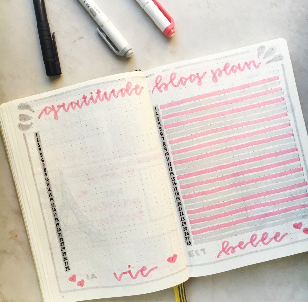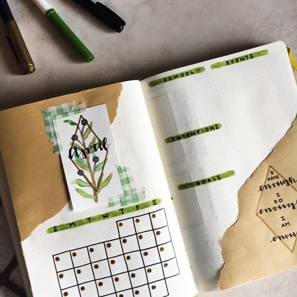 Hey there! I’m back after a bit of an extended leave of absence- I just haven’t been feeling super inspired lately and got off track when it comes to blogging, and actually bullet journaling as well. I started my May set-up but I didn’t have a clear vision for it and was making it WAY too complicated, and it all went downhill from there. So I took a little break from journaling this month, because I just wasn’t feeling it. And it’s all good; even though it bugs me a bit that I now have a month missing, I have some extra pages to play around with later:)
