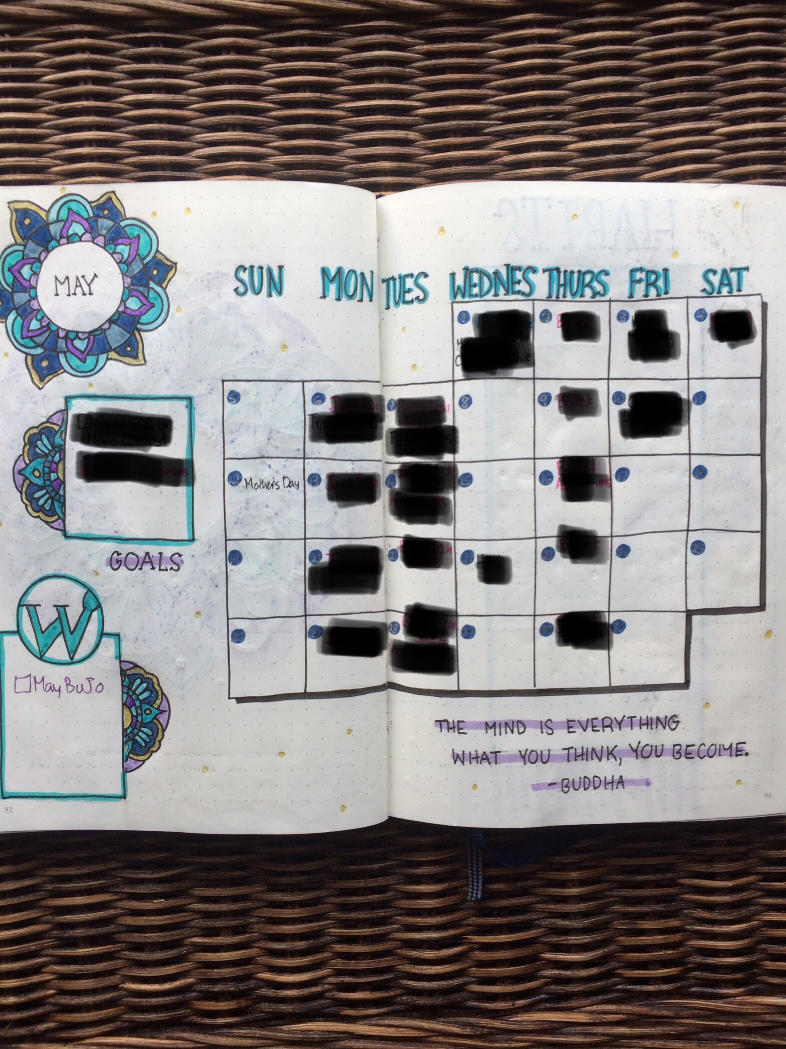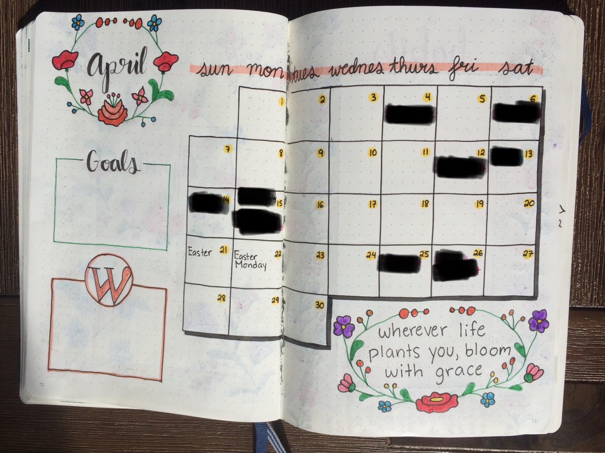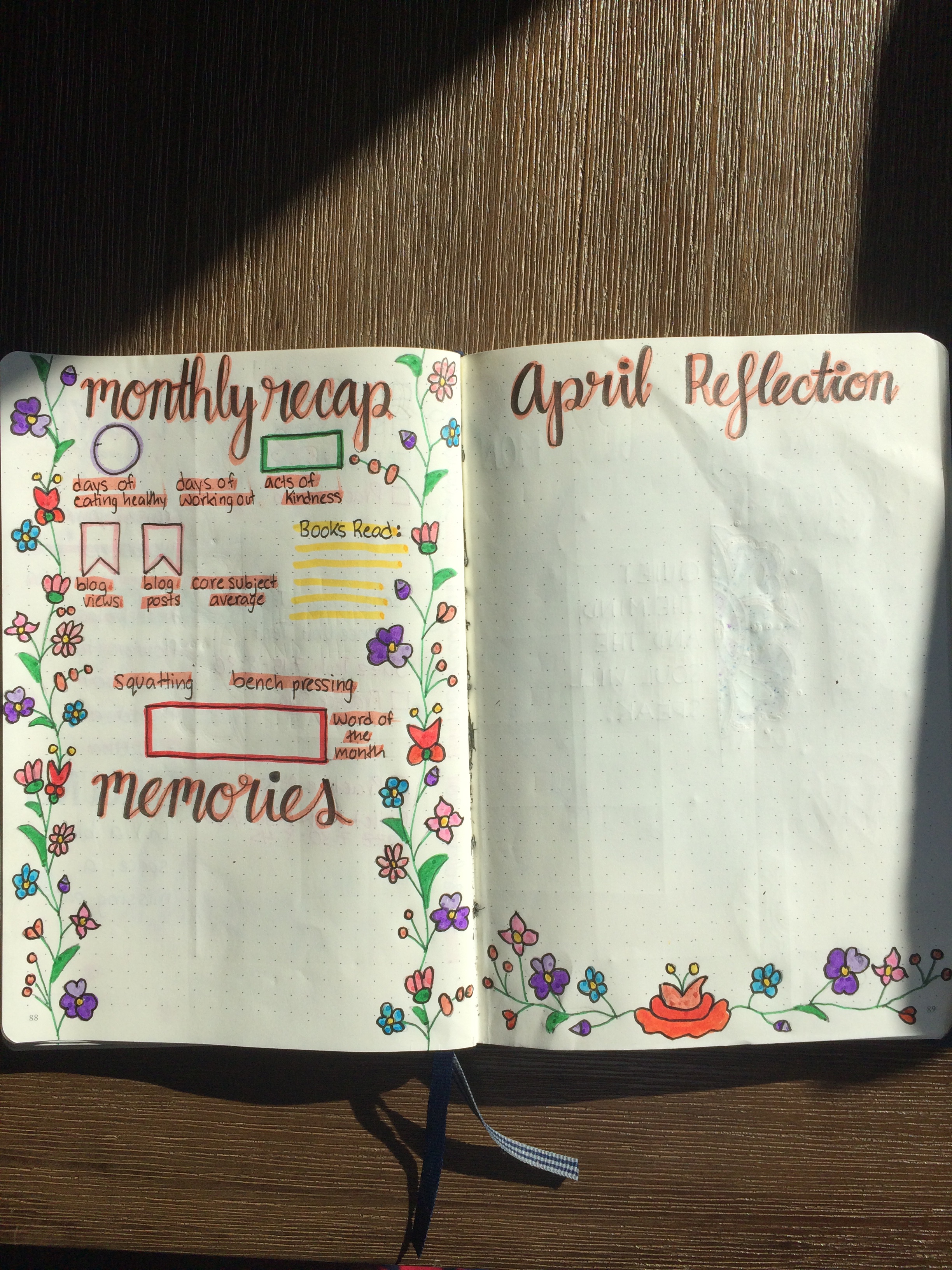 This might be one of my favourite calendar spreads of all time. All of the doodles and the drop shadows just look so good! In one corner of the calendar I drew some lines to make it look like a map, and I also included my usual goals and blog ideas section.