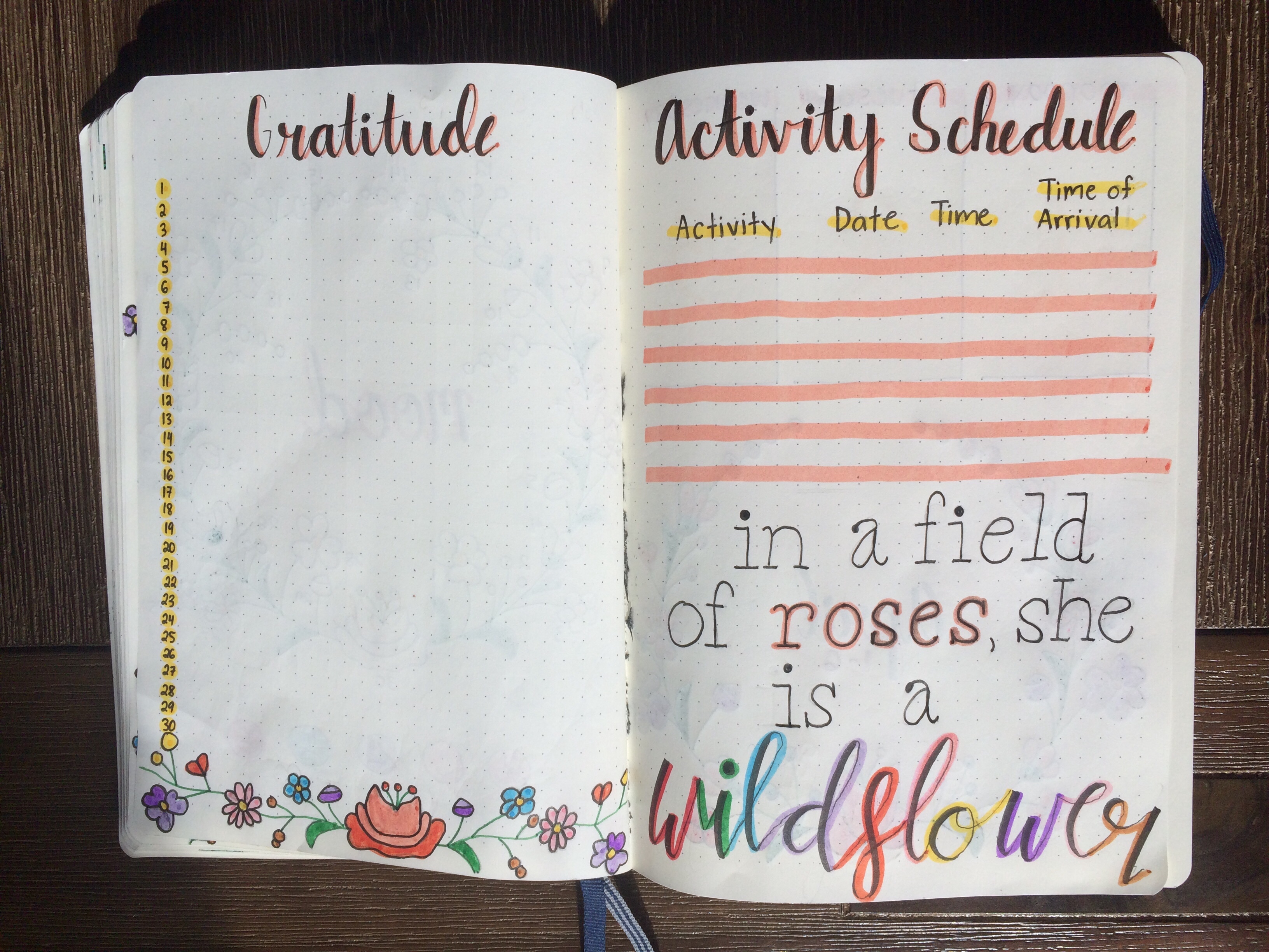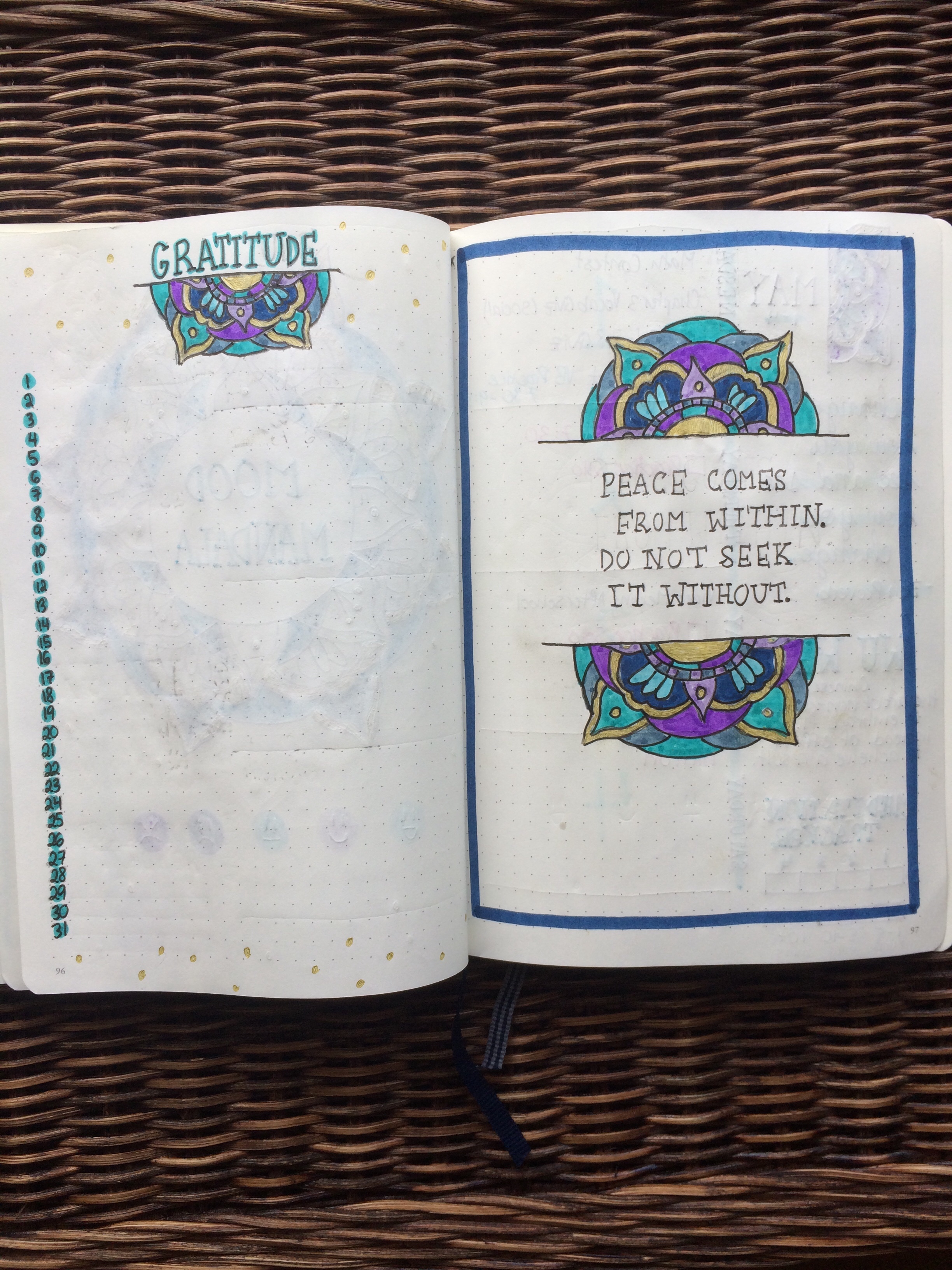 Here’s my gratitude log, and another page that I labelled “Places to Go”. I thought that it might be fun to make a kind of travel bucket list, that I can look back on later and see if I actually went to all of those places.