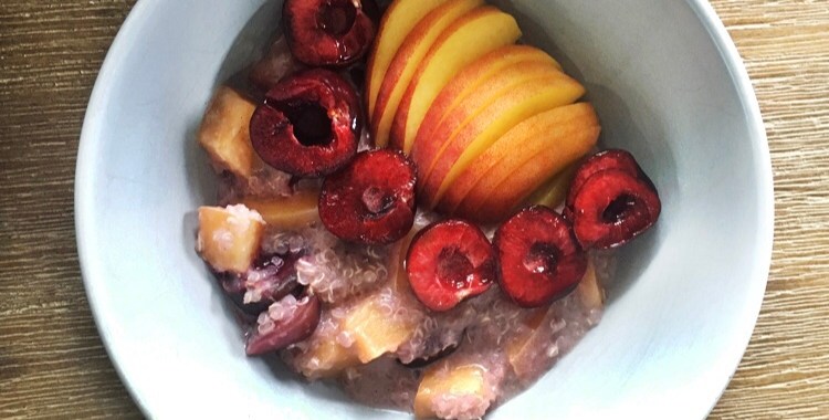 Hope you enjoy these Cherry, Peach and Quinoa Breakfast Bowls!