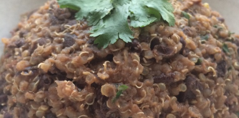 Hey there! For the last post of cilantro week, I have a recipe for Mexican Beans and Quinoa. It’s a great way to use up cooked quinoa that you have in your fridge, and makes an awesome side dish. The cilantro and lime work super well together, and some Mexican spices kick it up a notch. The final product actually turned out kind of creamy in texture, which is nice. I hope you enjoy!