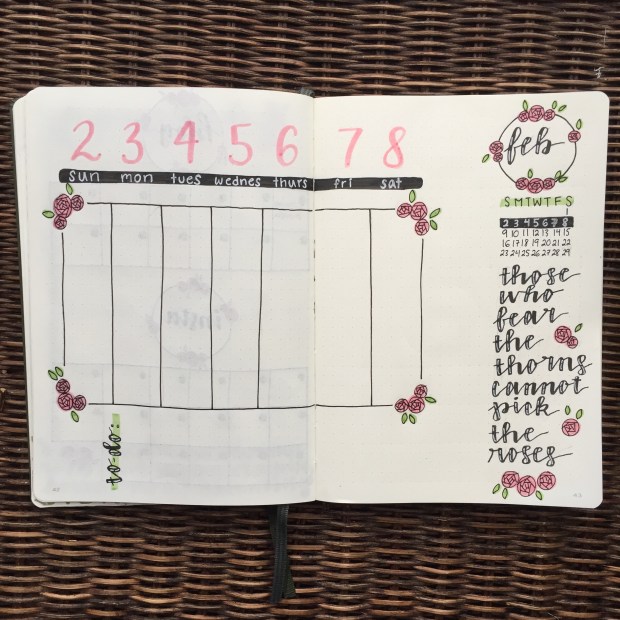 In the end, I think this theme turned out really well and it was super fun to make! I got to use some card stock and get creative with my trackers, and I put together a weekly spread in a that I’ve never done before. Here it is!